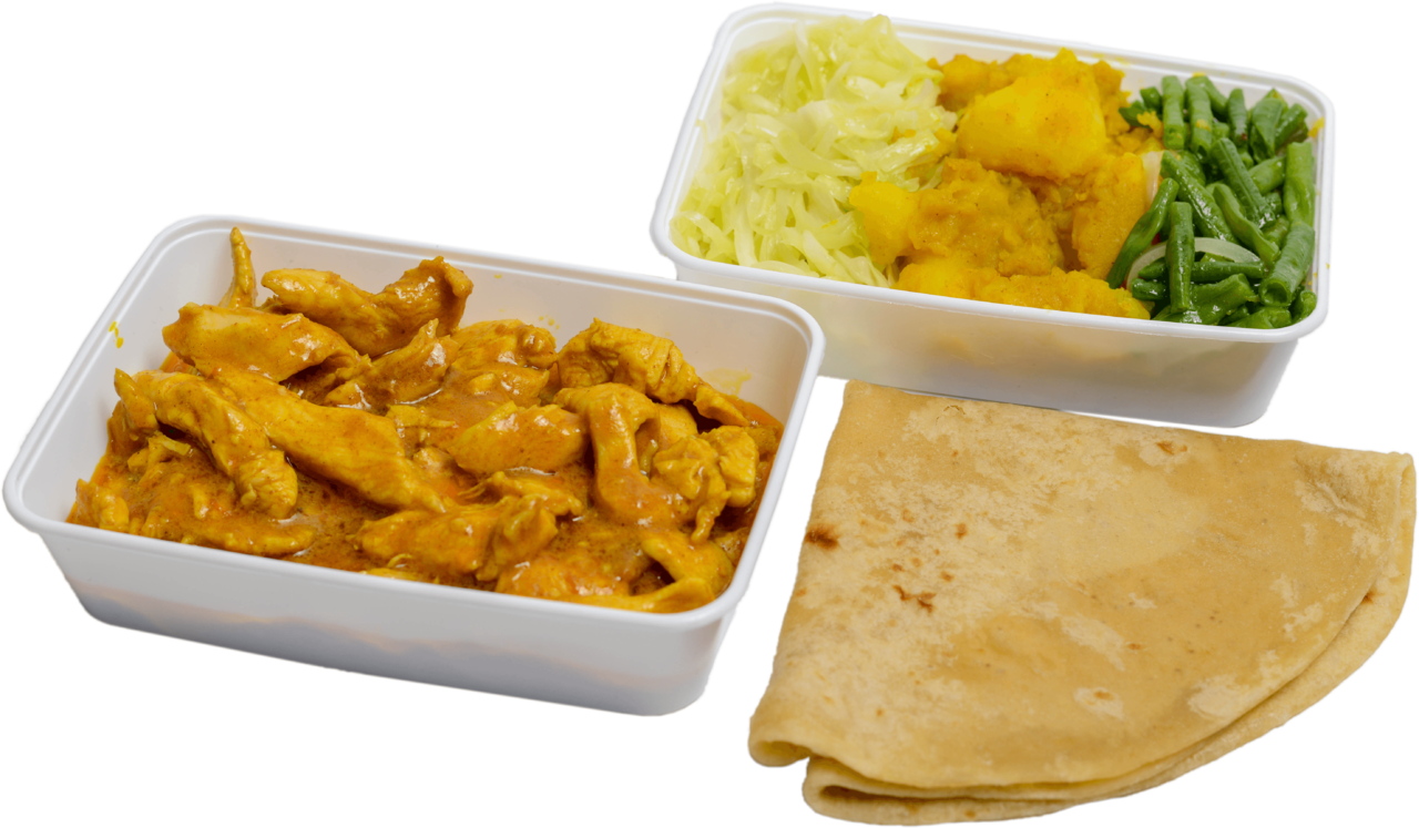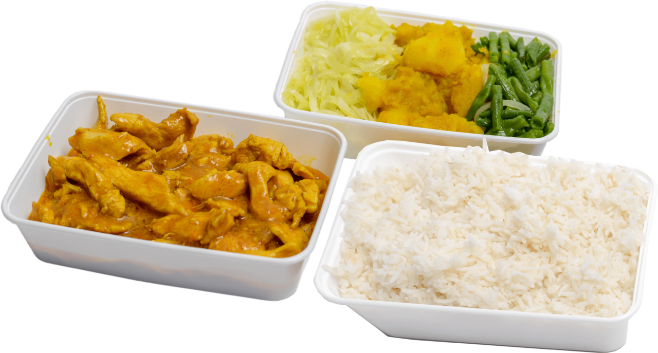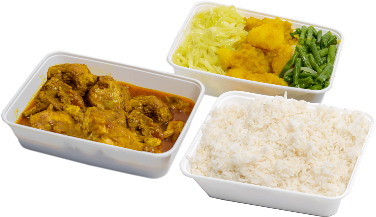 Keuze uit: Kippenpoten in kerrie, Doksa, Geit, Lams, Gestoofde kip ketjap, Kipfilet in kerrie en meer.